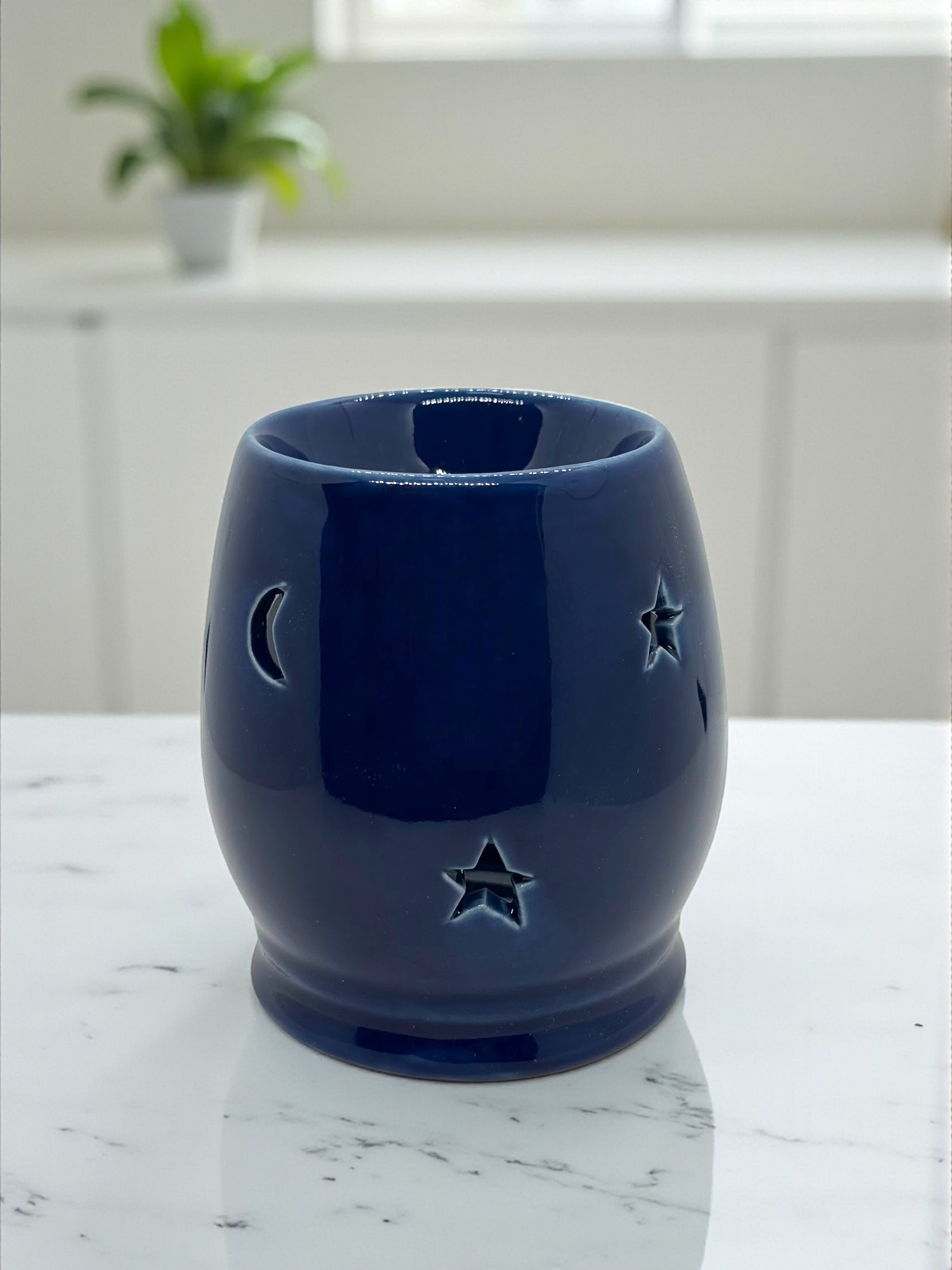 Quemador de cerámica azul diseño Luna y Estrella para aromaterapia