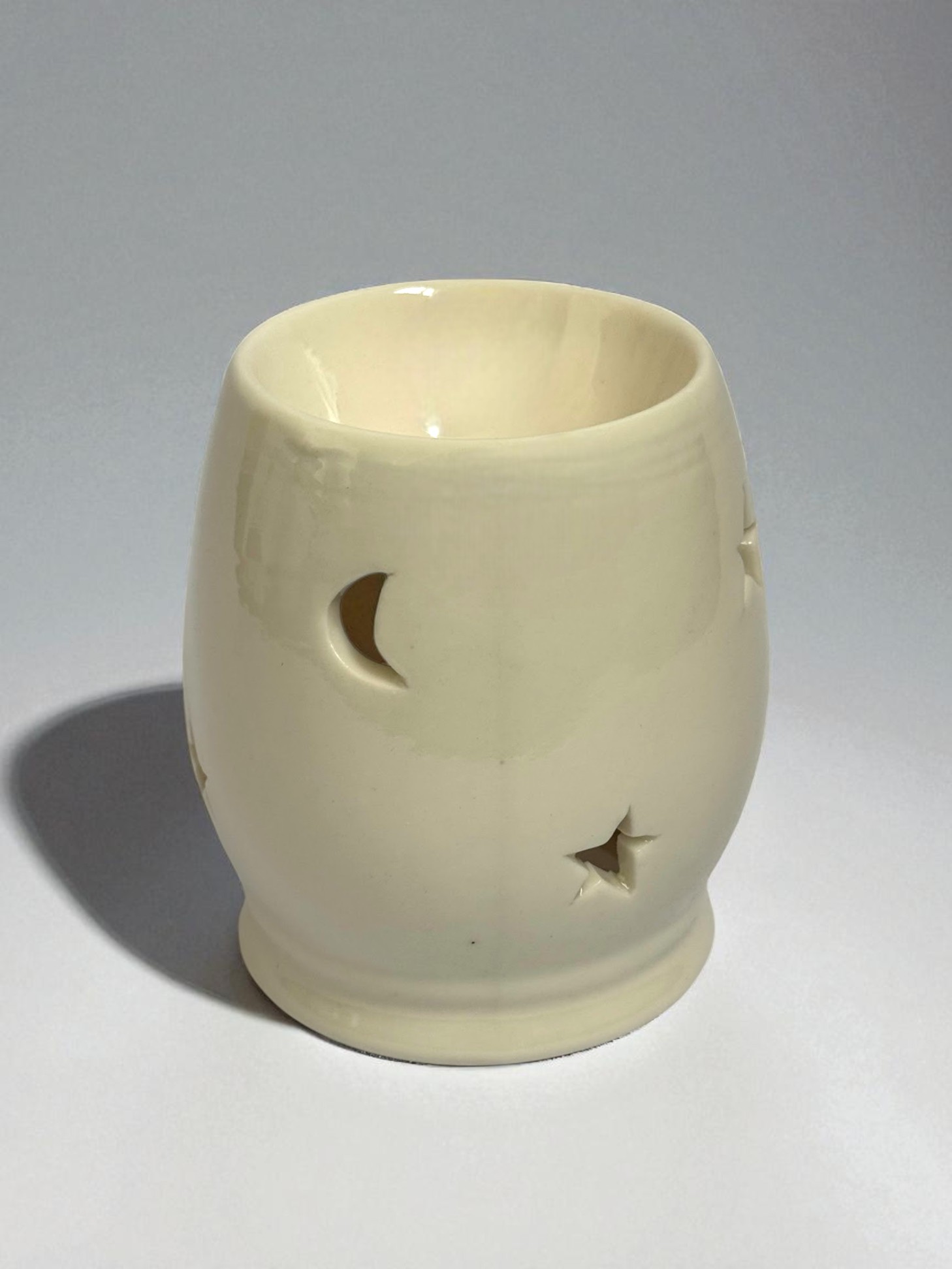 Quemador de cerámica Luna y Estrella visto desde arriba mostrando diseño celestial