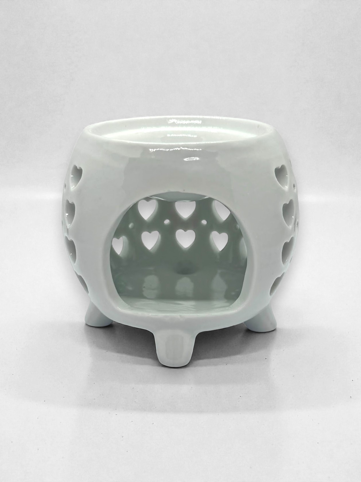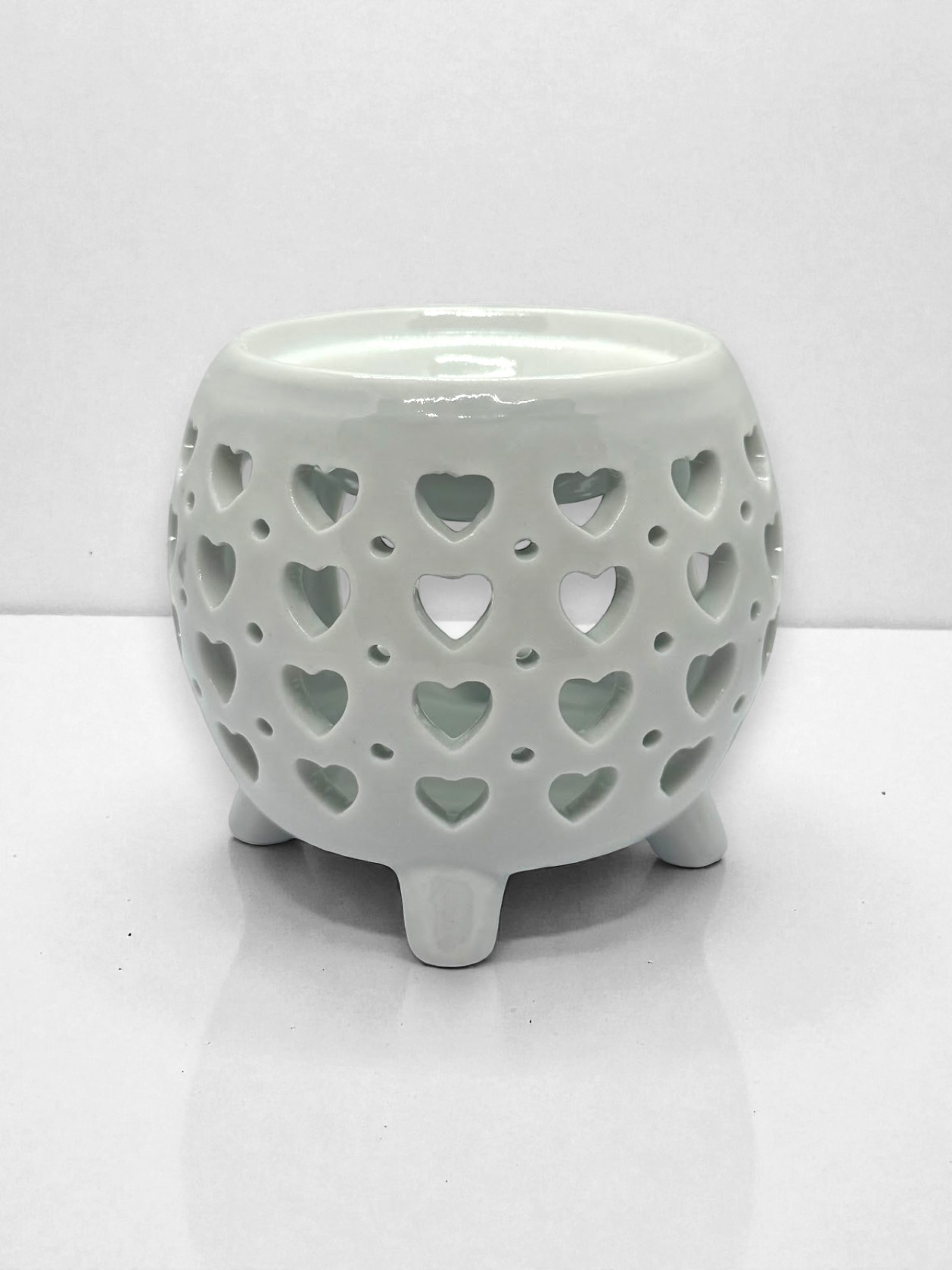 El difusor cerámico Love es una pieza decorativa artesanal que combina funcionalidad y romanticismo en un diseño compacto y elegante. Fabricado en cerámica de alta calidad en color blanco, presenta un encantador patrón de corazoncitos calados que permite filtrar la luz y el aroma, creando una atmósfera cálida y acogedora en cualquier rincón de tu hogar.