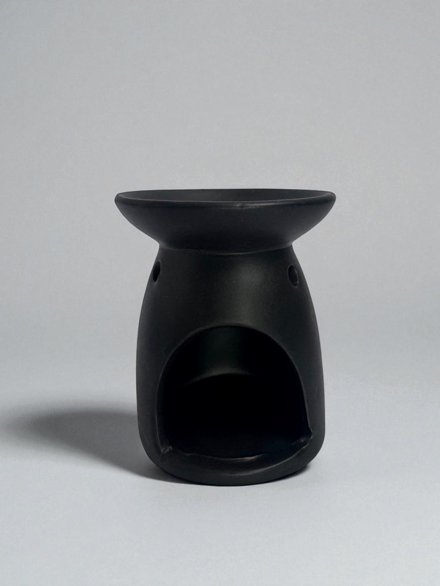 Nuestro difusor cerámico destaca por su fabricación en cerámica de alta calidad con acabado negro mate que aporta elegancia atemporal a cualquier ambiente. Su diseño calado permite una distribución uniforme del aroma mientras crea juegos de luz cautivadores cuando está en uso. Es perfecto para usar con nuestros wax melts artesanales de cera de soja natural.
