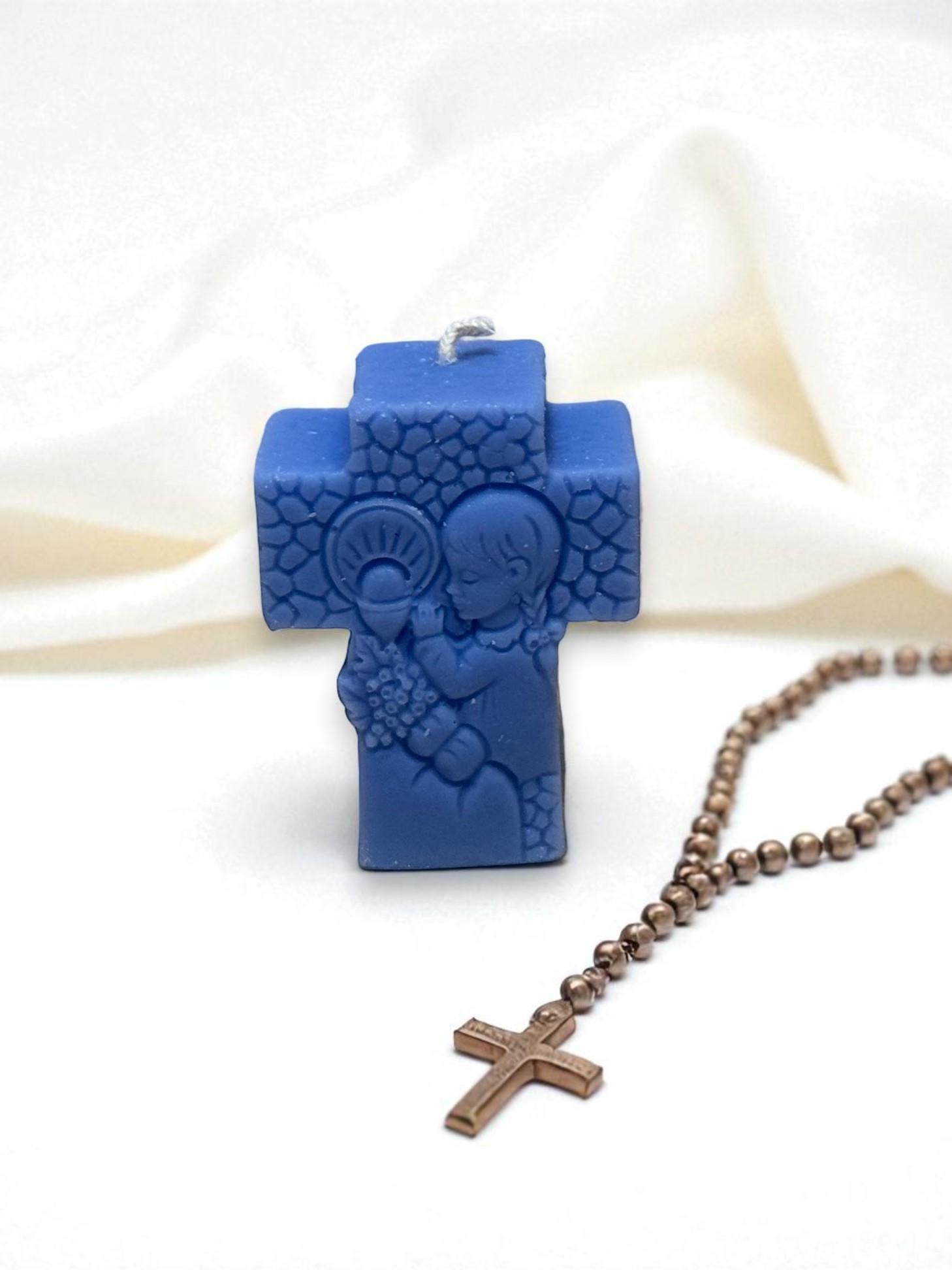 • 1 vela artesanal en forma de cruz elaborada con cera de soja natural