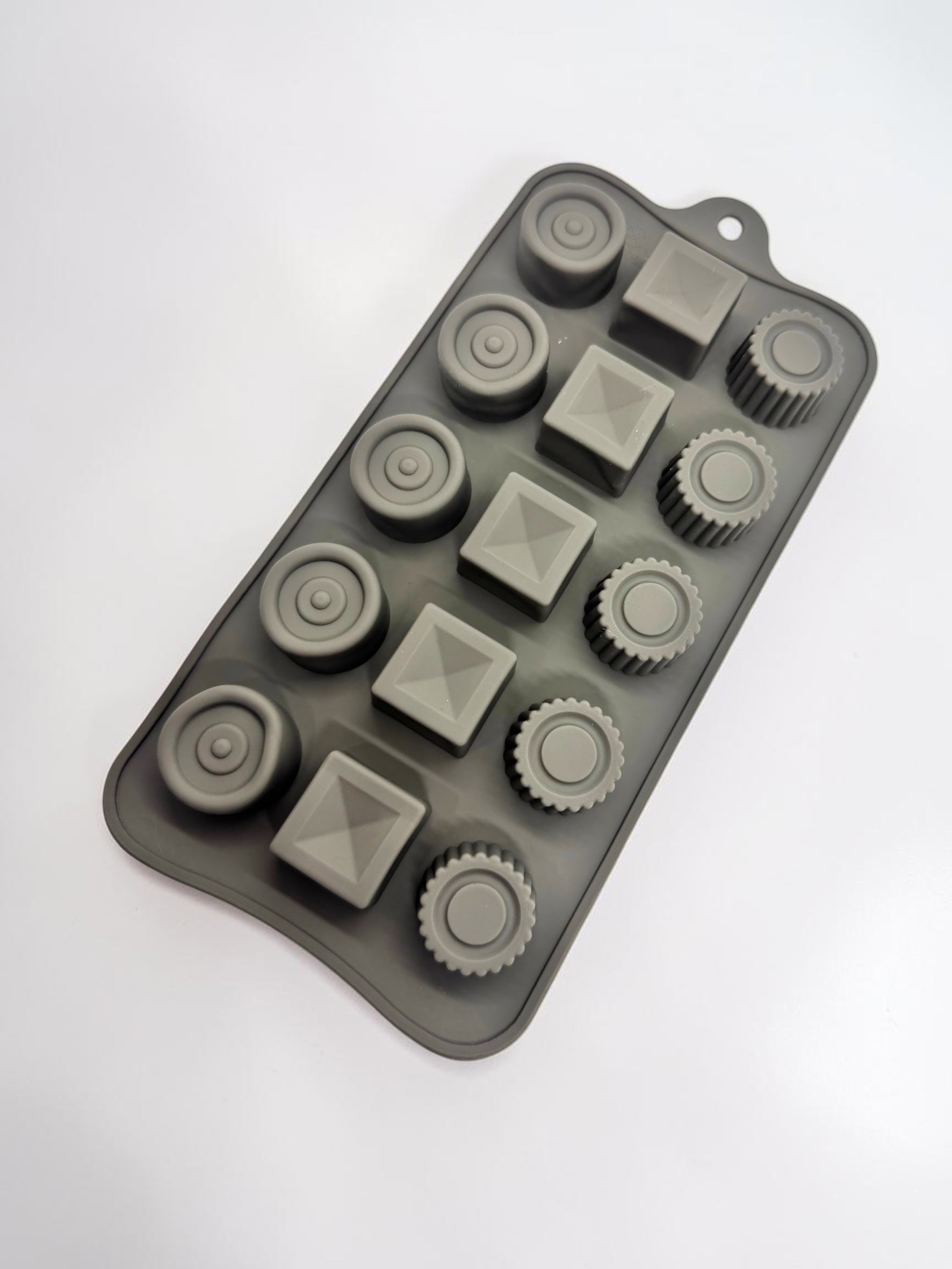 El molde silicona bombones surtidos es ideal para crear piezas elegantes y modernas con diferentes formas geométricas. Este molde incluye diseños circulares, cuadrados y texturizados, perfectos wax melts.