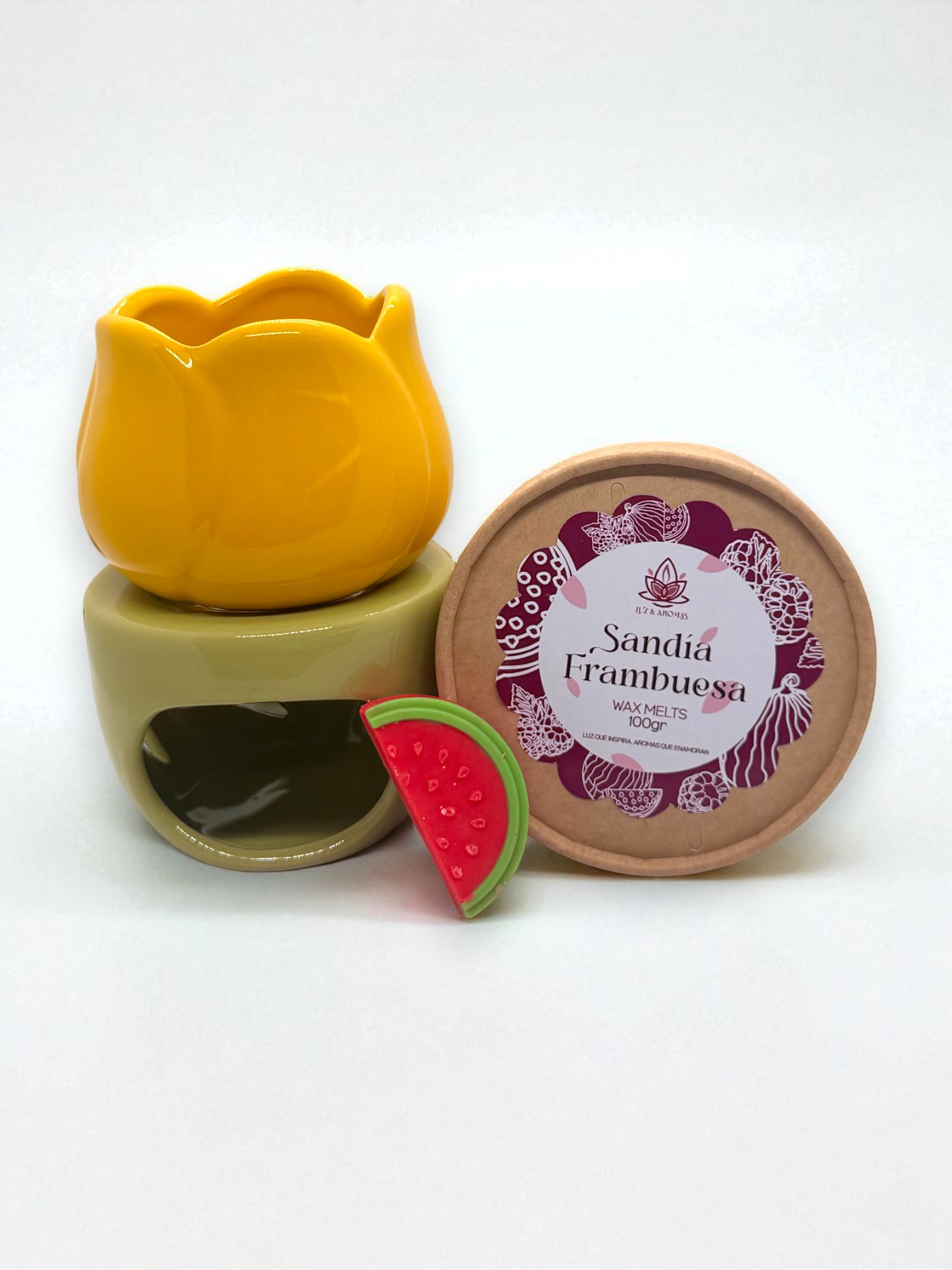 El set aromático Tulipán es la representación perfecta de la frescura y la armonía en tu espacio. Este hermoso conjunto combina funcionalidad y diseño con un quemador de cerámica inspirado en la delicadeza de los tulipanes, creando un ambiente acogedor mientras difunde suavemente el aroma de tu elección. Ideal para transformar cualquier rincón de tu hogar en un santuario de bienestar y serenidad.