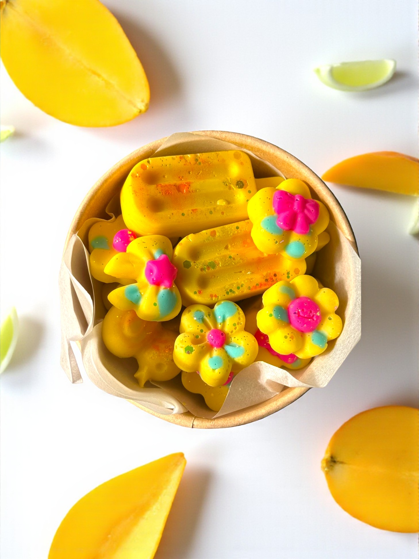 A diferencia de las velas tradicionales, los wax melts de mango ofrecen una experiencia aromática más intensa y duradera. Nuestra fórmula con cera de soja 100% natural garantiza una combustión limpia sin toxinas, perfecta para disfrutar sin preocupaciones. Cada pieza está diseñada para liberar gradualmente su fragancia tropical, llenando tu espacio de un aroma dulce y refrescante que evoca días soleados y paraísos exóticos.